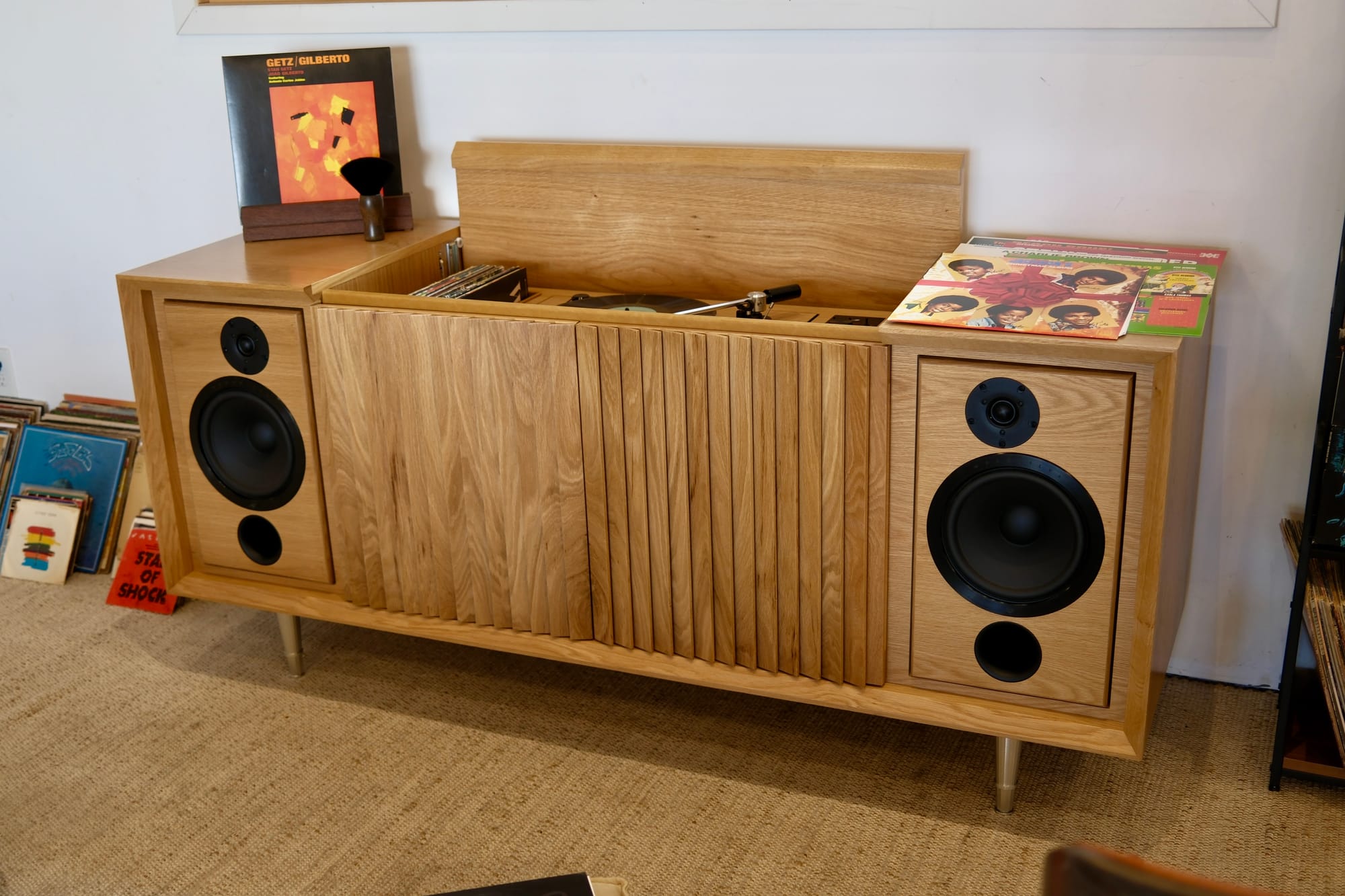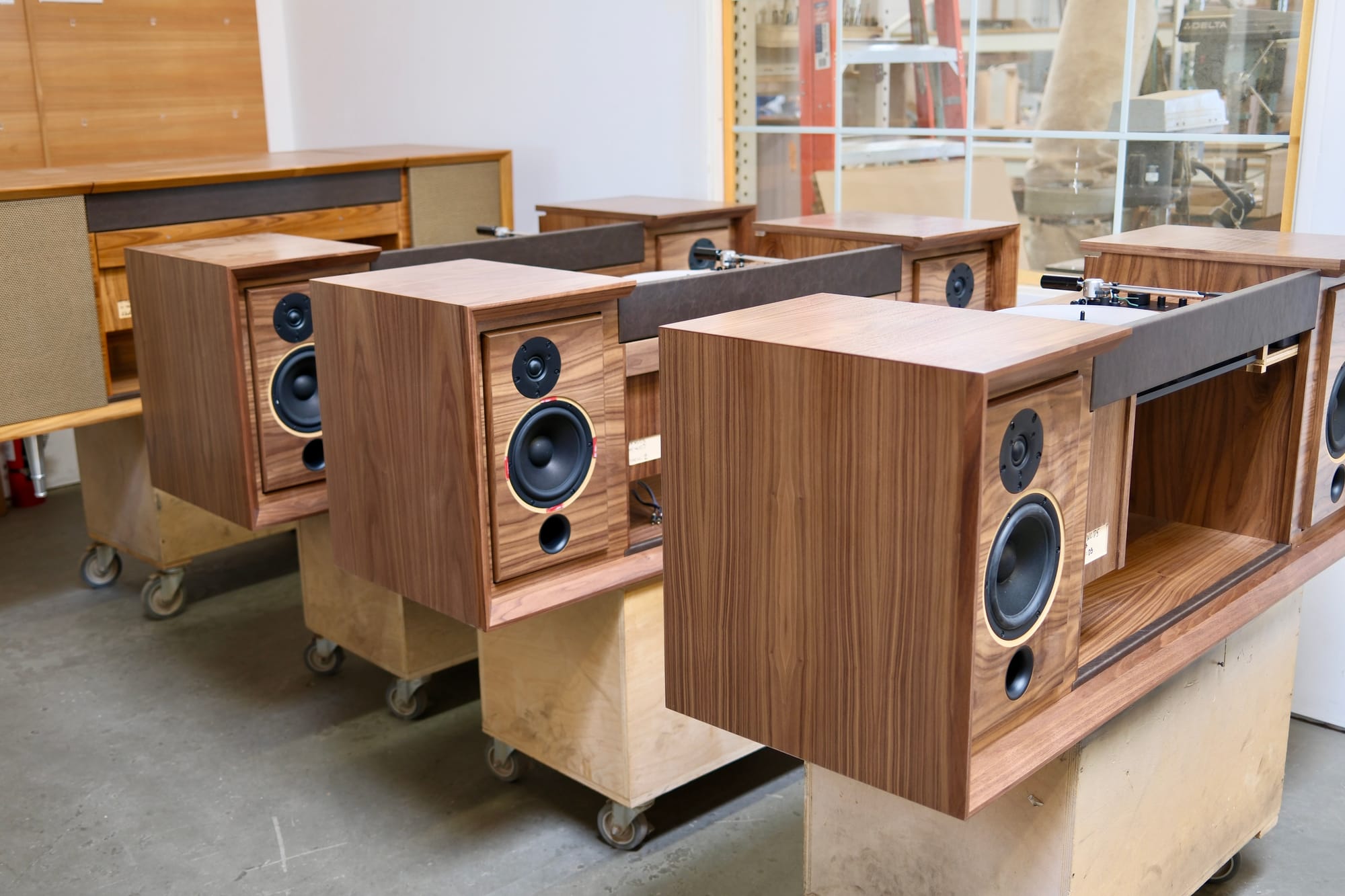 In hindsight, it’s all obvious. Looking closely, you can see how the practical decisions collide with the creative woodworking. Of course, the obvious choices, like speaker faces that match the grain of the wood around them, are the ones that usually take the most time to implement and get right for each unit.