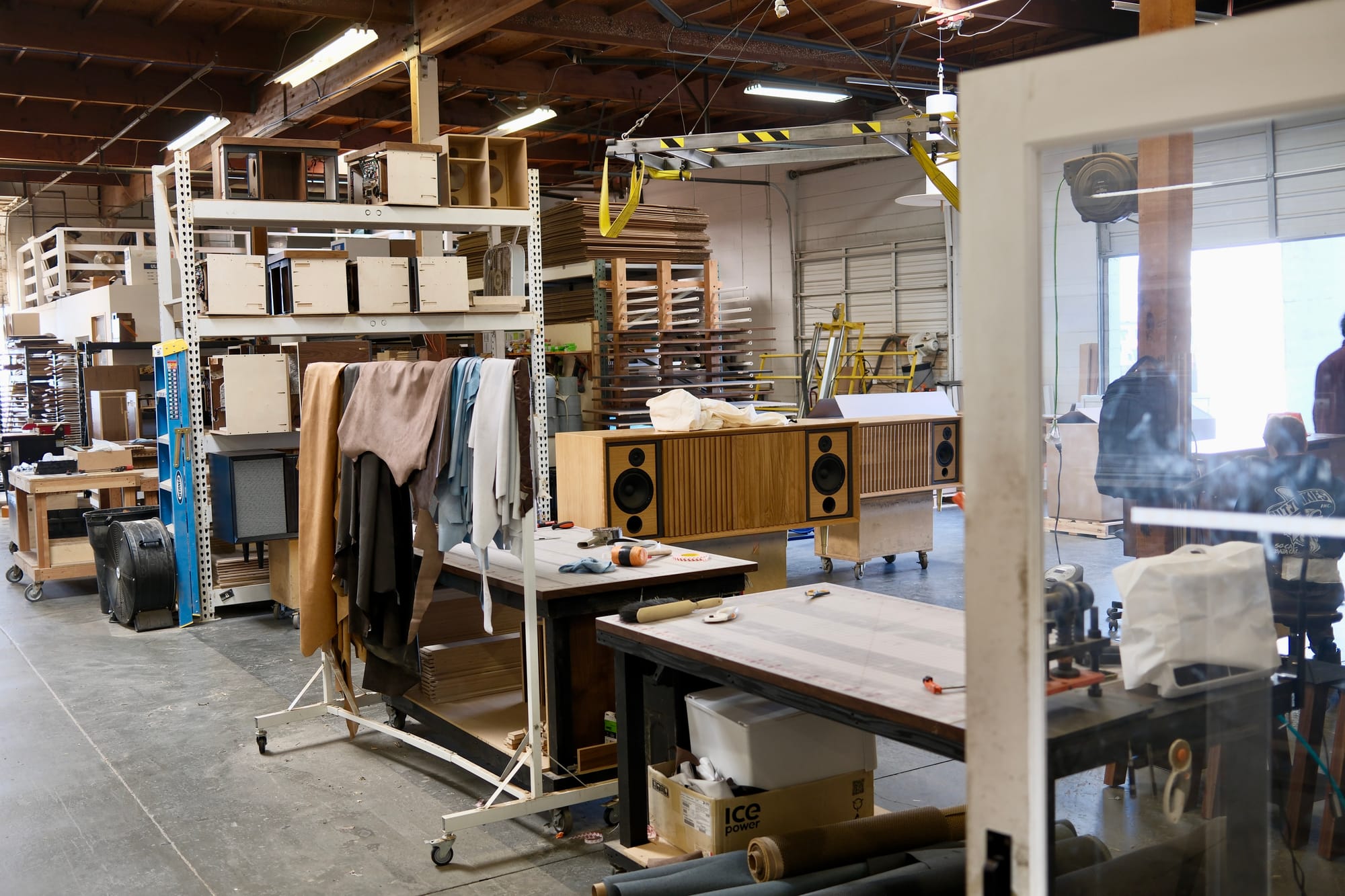 Behind-the-scenes of photos of Wrensilva's factory where it's hand-building record players.