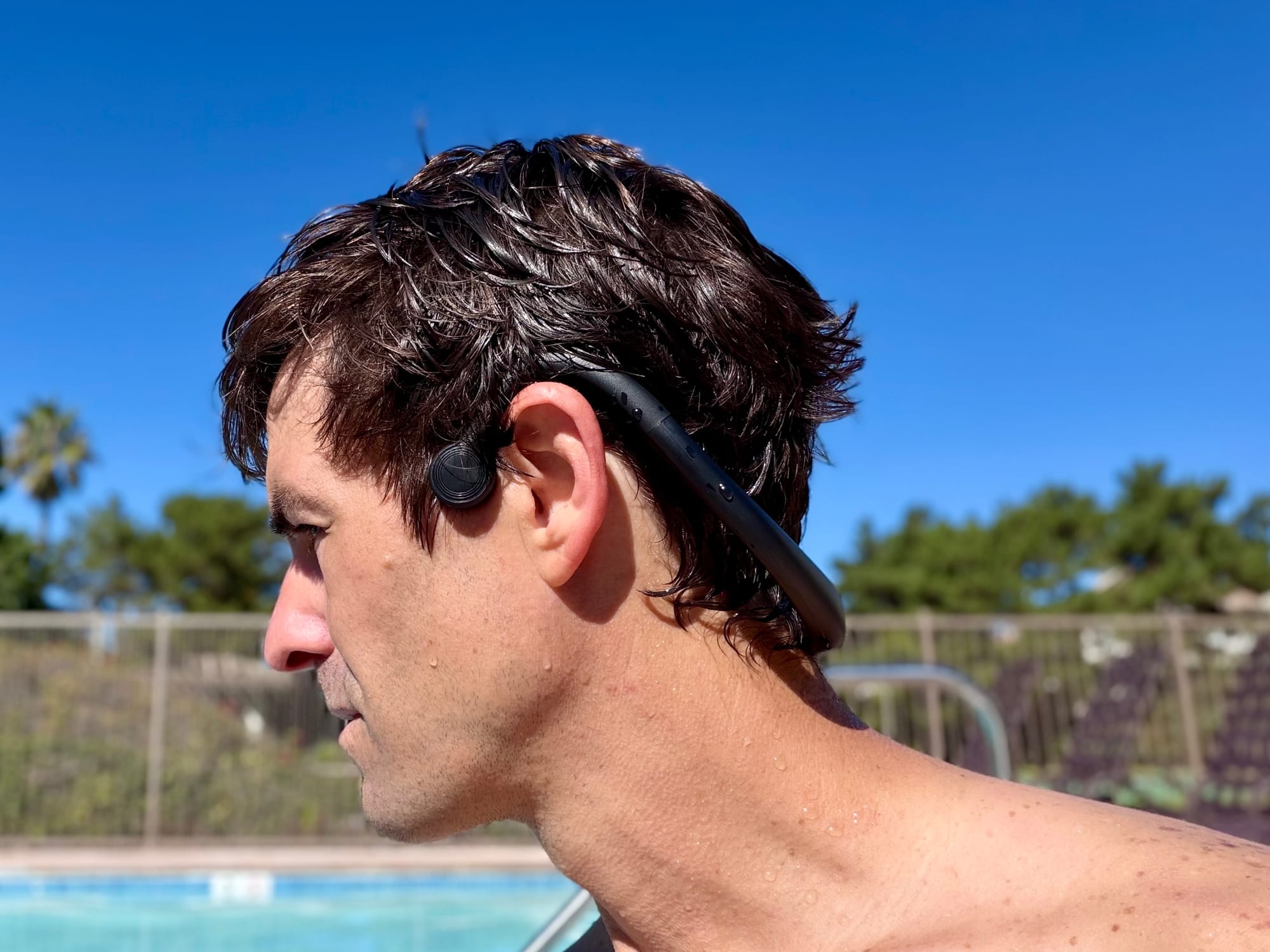 One aspect of the bone conduction is that I needed to turn them up decently loud. That means that at a quiet pool you can hear some inaudible sounds from several feet away. I don’t think it’s loud enough for people to hear the podcast conversation you’re listening to, but it may be loud enough to be annoying. There is some audible noise from the Z2 underwater as well.
