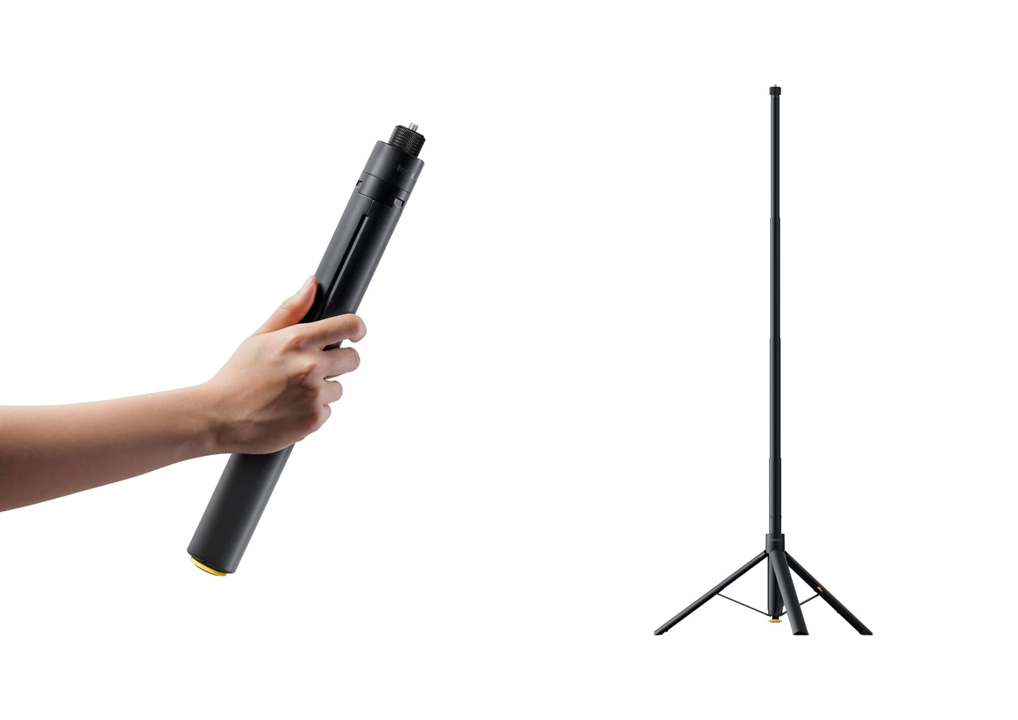 Tripods are usually bulky and cumbersome. The Insta360 Throwpod, however, is relatively compact and super quick to open and adjust. It pops open with a press of the bottom button and extends up to 3.6 feet tall.