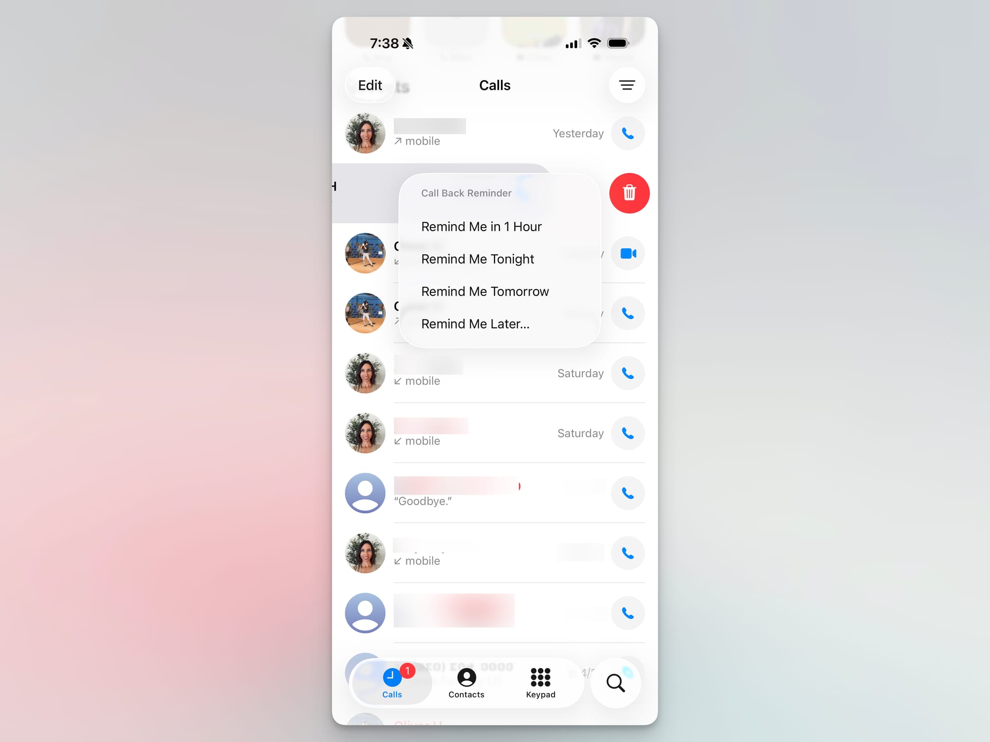 In the latest iPhone software, iOS 26, which was released in 2025, you can swipe left on a recent or missed call and instantly set a reminder to call that person back. If you’re using the new Phone interface, then the reminder will even show at the top of the app.