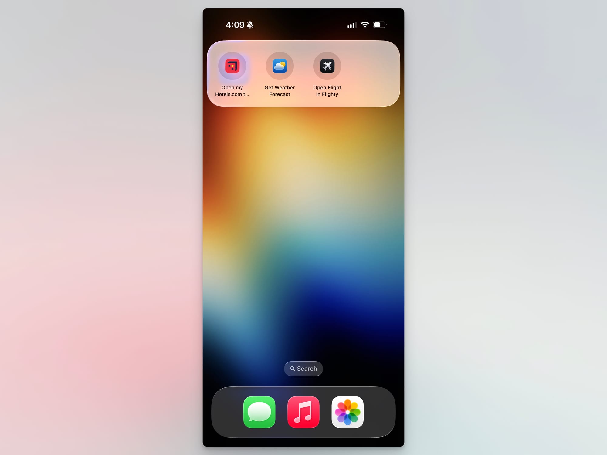 My suggestion would be things like: Get Weather Forecast, Open Flighty, or Open my Hotels.com trips. You can find Shortcut suggestions for apps on your phone by scrolling down in the Library section of the Shortcuts app.
