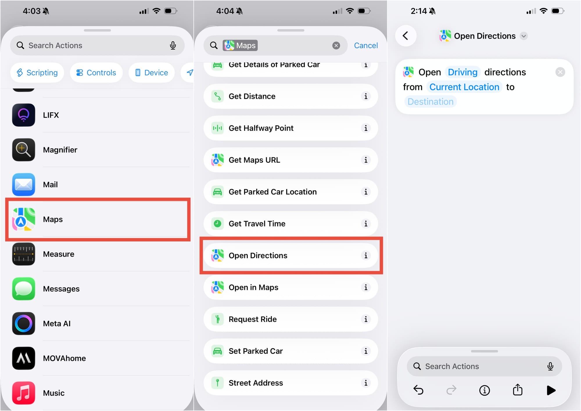 Tap Next, and then select the “Open Directions” Shortcut. That’s it.