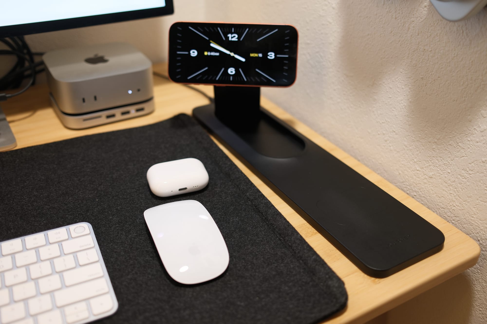 I’ve found the stand to be perfectly adjustable. It has enough movement to it without being unwieldy or gangly. Usually, I keep it angled towards me and then rotate the iPhone horizontally to put it in StandBy mode. Then I can have big widgets within arm’s reach.