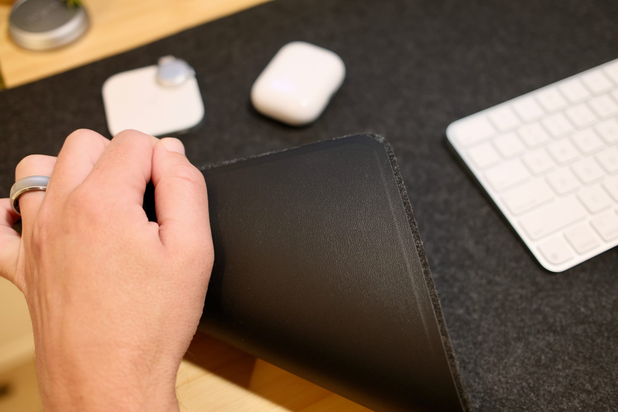 As a change of pace, I’ve been using the felt side up. It’s plenty thick with a 4mm height. That’s enough cushion beneath my keyboard to change the feel of typing and dampen the sound—something I didn’t know I wanted. It makes typing quieter.